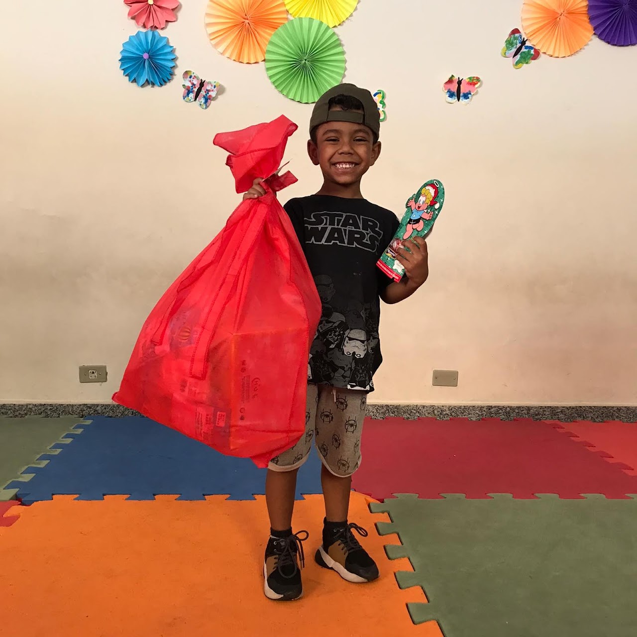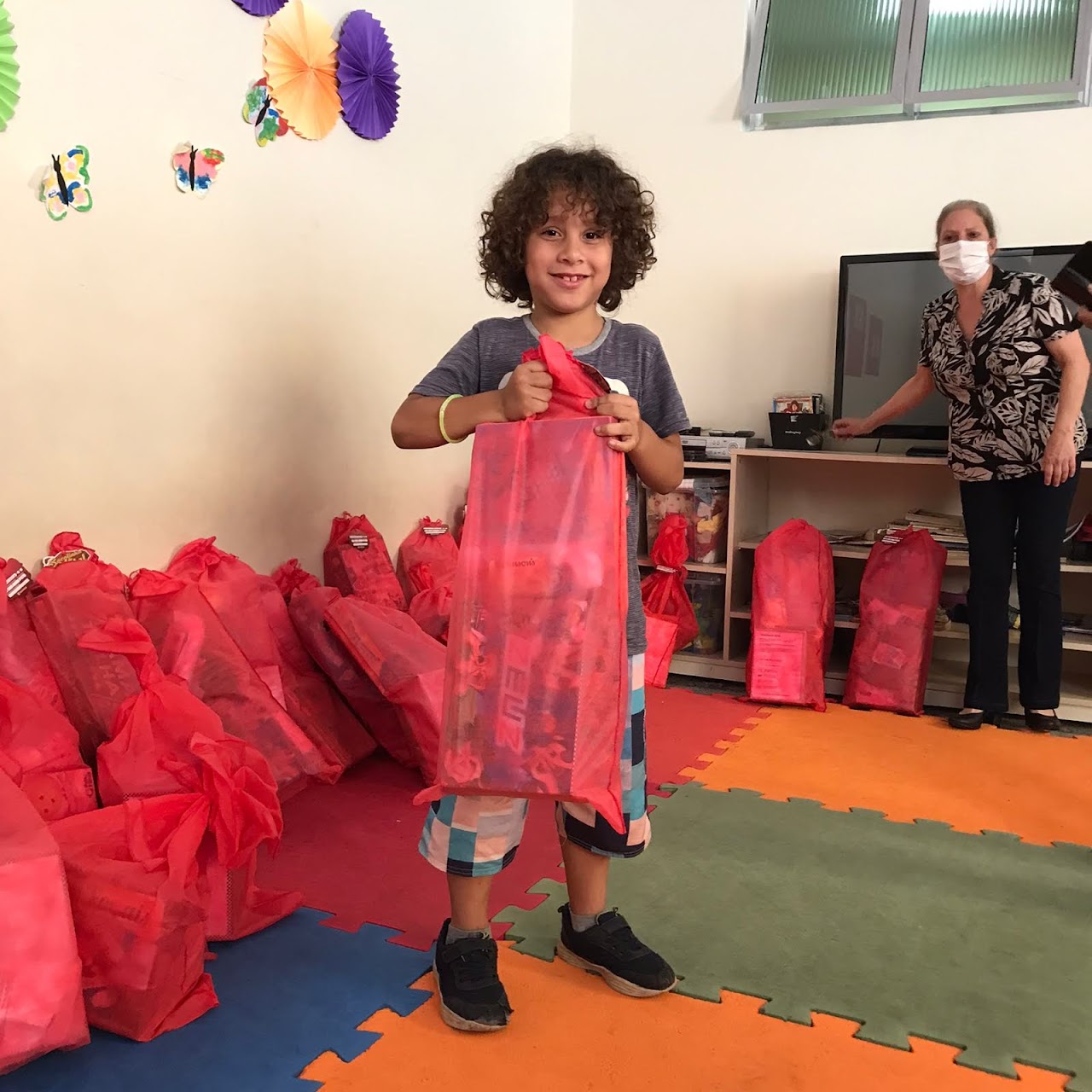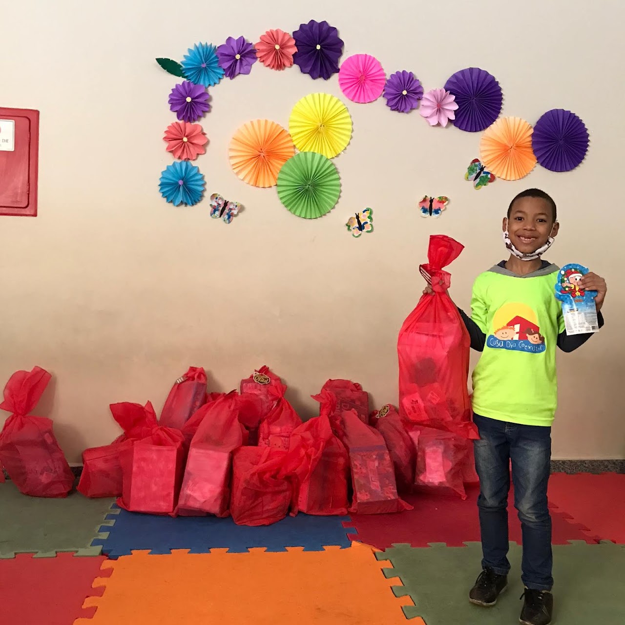 Com sacolinhas de Natal, colorimos sonhos e aquecemos corações infantis